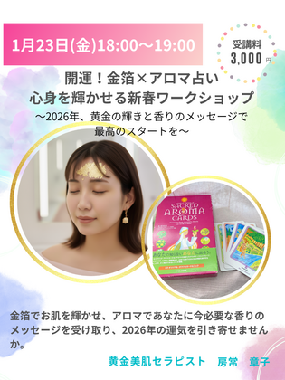 金箔でお肌を輝かせ、アロマで今必要なメッセージを受け取り、 2026年の運気をぐんぐん引き寄せましょう!